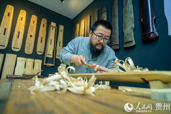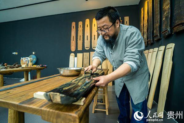 古琴大师王兵在制作古琴。人民网 涂敏摄