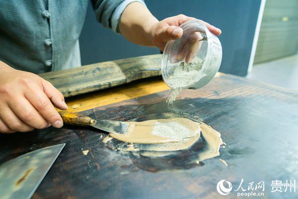 调制鹿角霜漆灰。人民网 涂敏摄