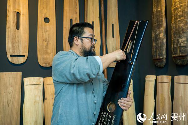 王兵为古琴成品调音。人民网 涂敏摄
